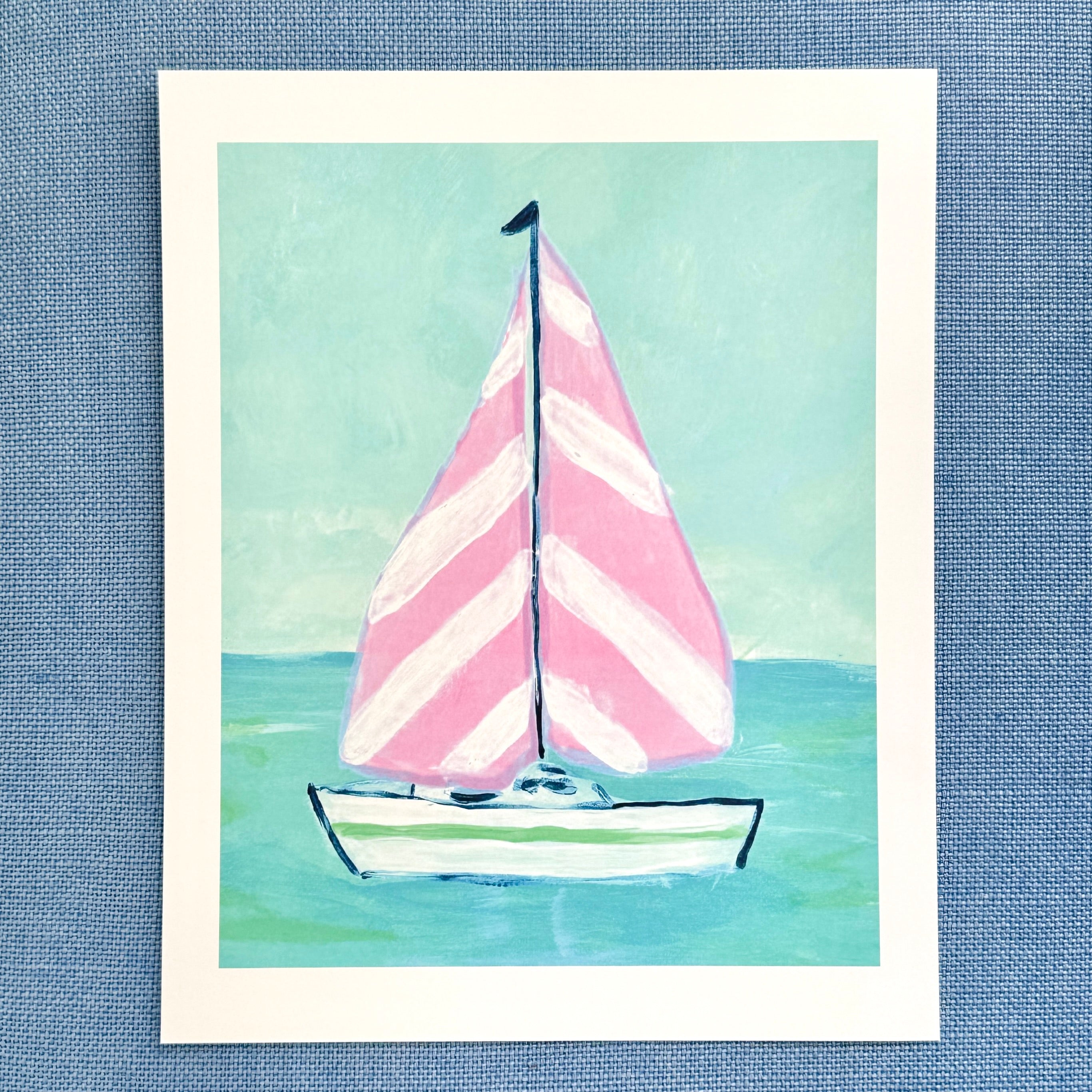 Pink Stripe Sailboat Art Print