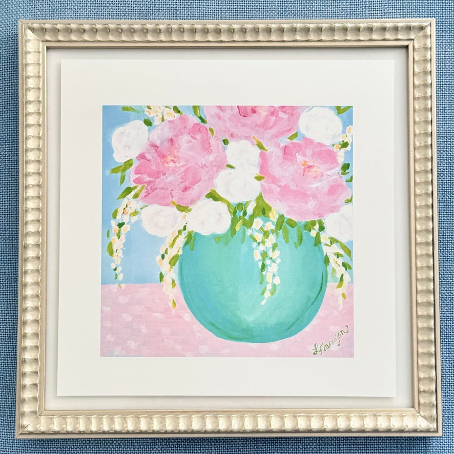 Pink Peonies in Turquoise Vase Art Print
