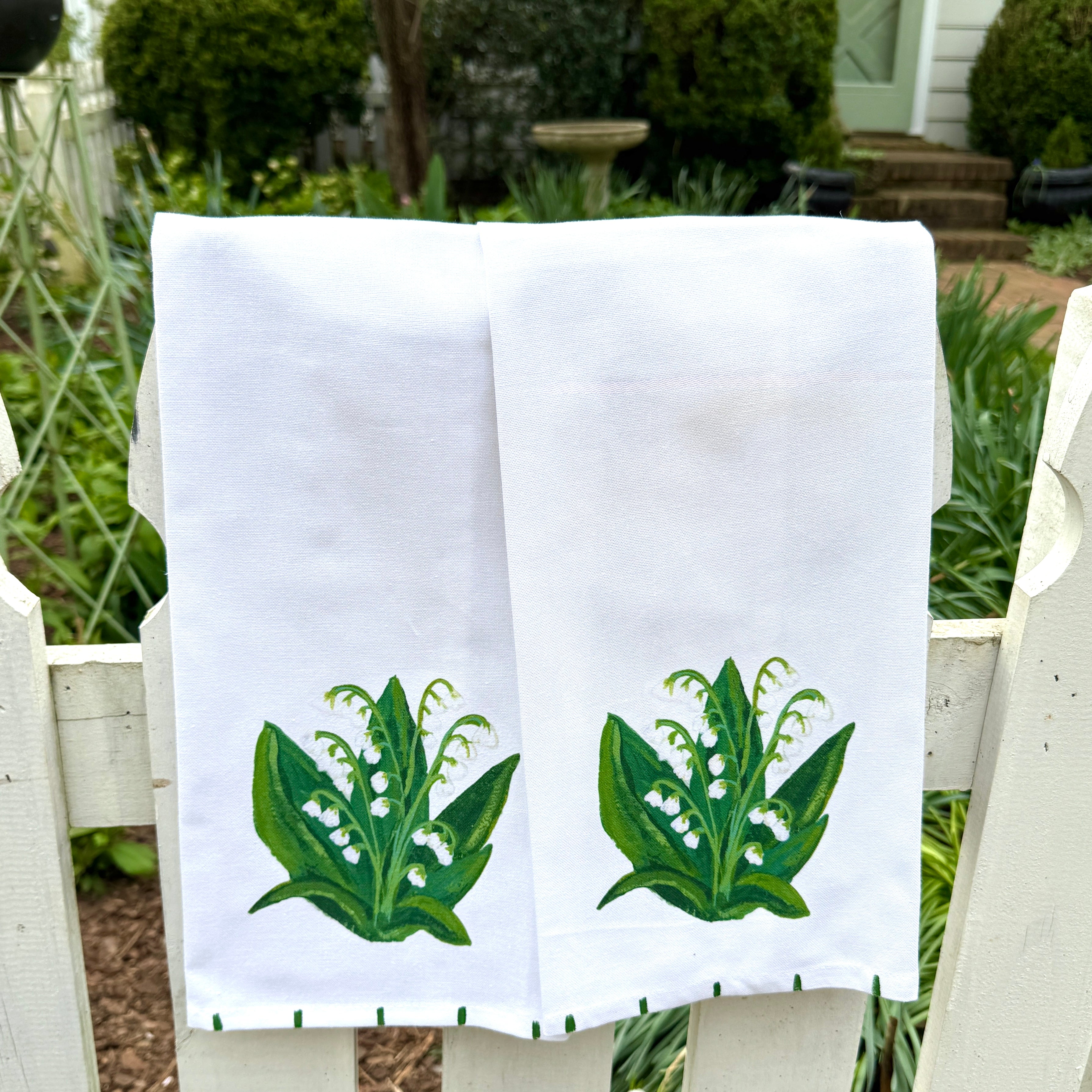 Green Lily of the Valley Floral Tea Towel