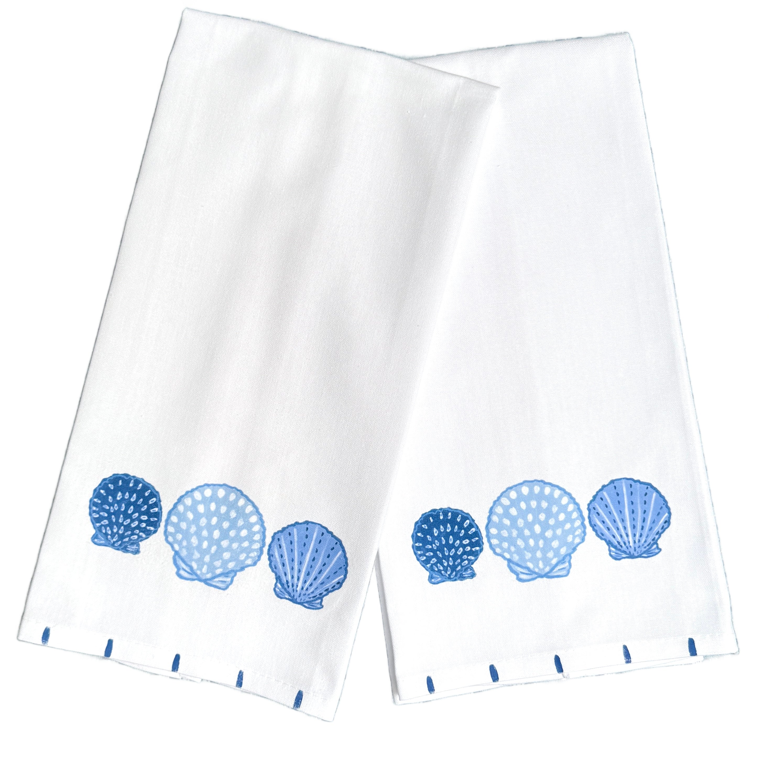 Blue and White Sea Shell Tea Towel