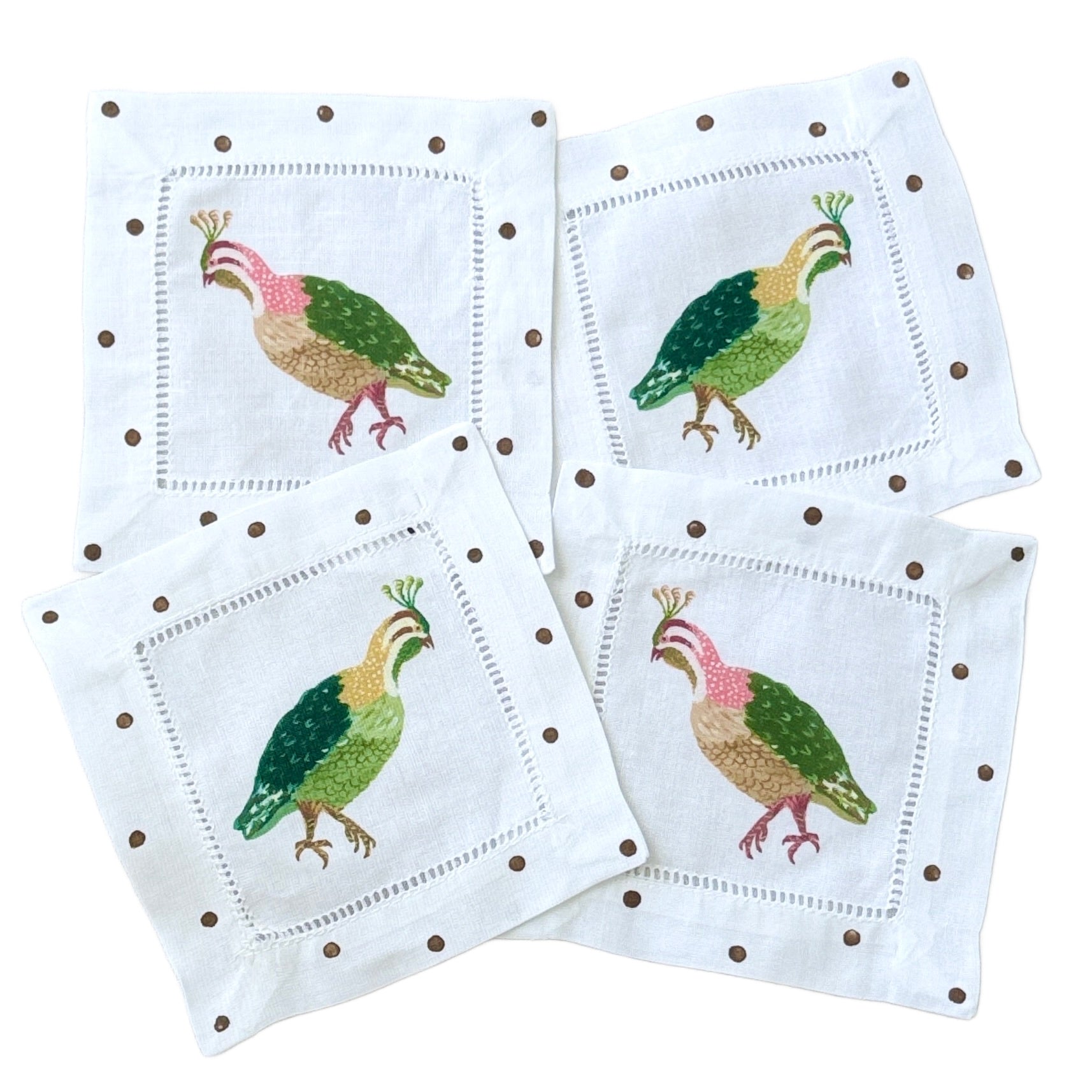 Colorful Quail Linen Cocktail Napkins