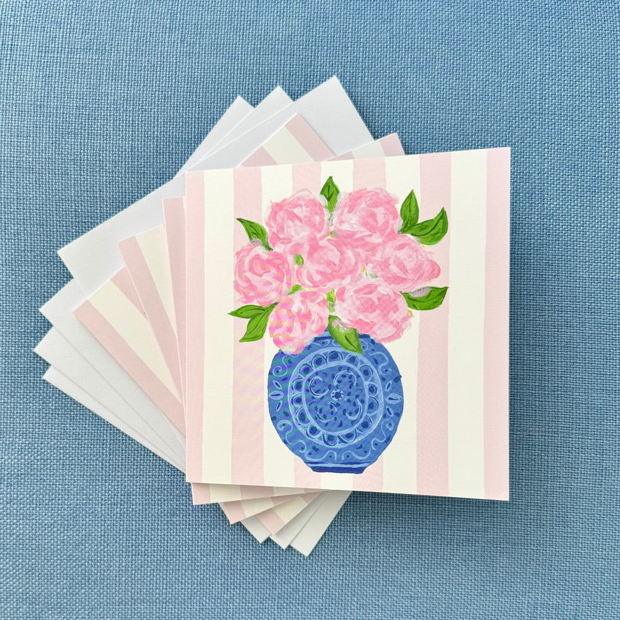 Gorgeous Pink Peonies in a Blue Chinoiserie Vase will brighten anyone's day! These beautiful oversized square notecards feature a print of my original painting of peonies and will leave a lasting impression with every well wish. They make a perfect hostess or housewarming gift and don't forget to get some for yourself too!