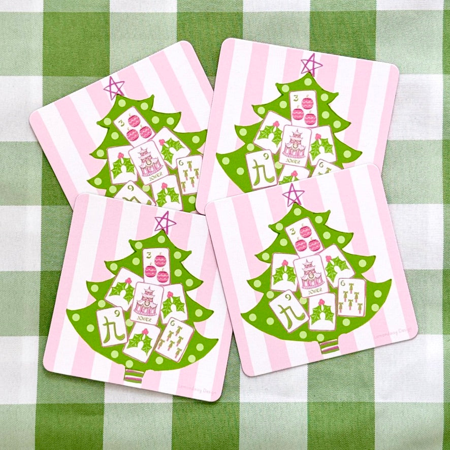 Set of 10 Paper Coasters featuring my Merry Mahjong Christmas Tree. Comes packaged with a bow. Makes a great hostess, housewarming, and holiday gift idea for your Mahjong loving friends.